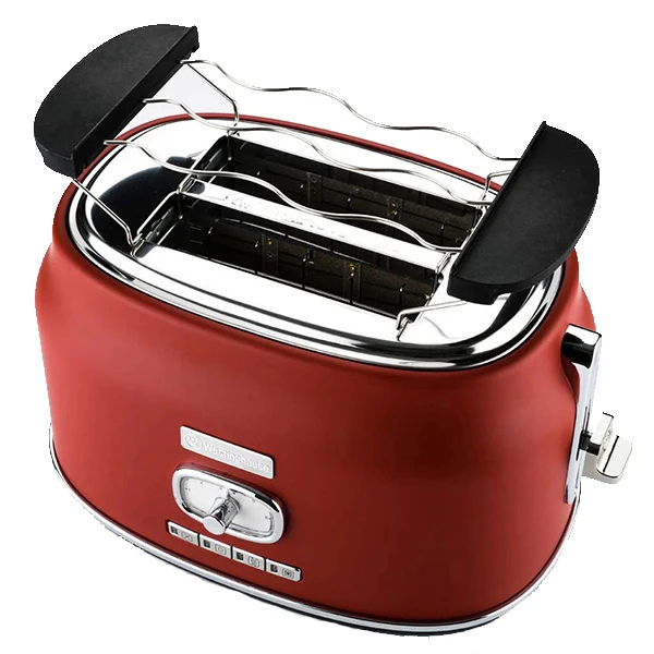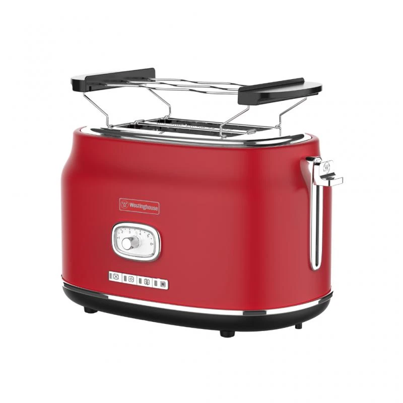 توستر وستینگهاوس مدل WKTTB857RD سری Retro که برای زیبایی برای هر آشپزخانه ای طراحی شده است در 3 رنگ: مشکی، قرمز و سفید عرضه می شود. امکان میزان برشتگی متغییر به مقدار مورد نظر شما را ارائه می دهد که از سطح ۱ (روشن) تا ۶ (تاریک) را می توانید انتخاب کنید. 2 شکاف با امکان قرار گرفتن نان در وسط امکان قرار دادن نان با هر ضخامتی را فراهم می کند و به طور یکنواخت آن را برشته می کند . دارای دکمه های یخ زدایی، گرم کردن مجدد نان و شیرینی و دکمه کنسل نیز می باشد که برشته کردن عالی را برای اقلام یخ زده ، شیرینی ها و موارد دیگر را فراهم می کند. دارای چراغ های نشانگر وضعیت ، سینی خرده نان قابل جدا شدن برای تمیز کردن آسان، اتصال برق ایمن ، کنترل میزان برشتگی ، چراغ نشانگر یخ زدایی و گرم کردن مجدد با طراحی زیبا و یکپارچه می باشد .