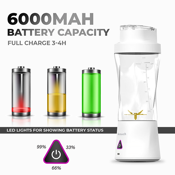 بدون نیاز به برق مستقیم! فقط شارژ کن و هر جایی استفاده کن. این دستگاه با یک باتری قدرتمند و عمر بالا، آمادهی همراهی در آشپزخانه، باشگاه، مسافرت و محل کار است.