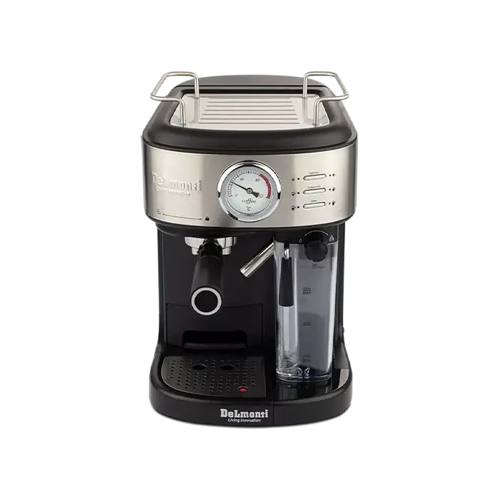 شرکت دلمونتی از دیر باز یکی از بهترین تولید کننده های لوازم خانگی برقی میباشد اسپرسو ساز دلمونتی یکی از با کیفیت ترین و با امکانات ترین اسپرسو های این شرکت است فشار بخار این دستگاه 20 بار بخار بوده و 1500 وات قدرت دارد این دستگاه دارای مخزن شیر جداگانه میباشد که برای درست کردن کاپوچینو و فوم قهوه به صورت اتومات از آن استفاده میشود این دستگاه تمام اتومات بوده و دارای دقطع کن قهوه یه صورت تک و دوبل میباشد این دستگاه دارای نشانگر فشار بخار بوده و اندازه ی بخار ایجاد شده داخل دستگاه متناسب با قهوه را نشان میدهد .